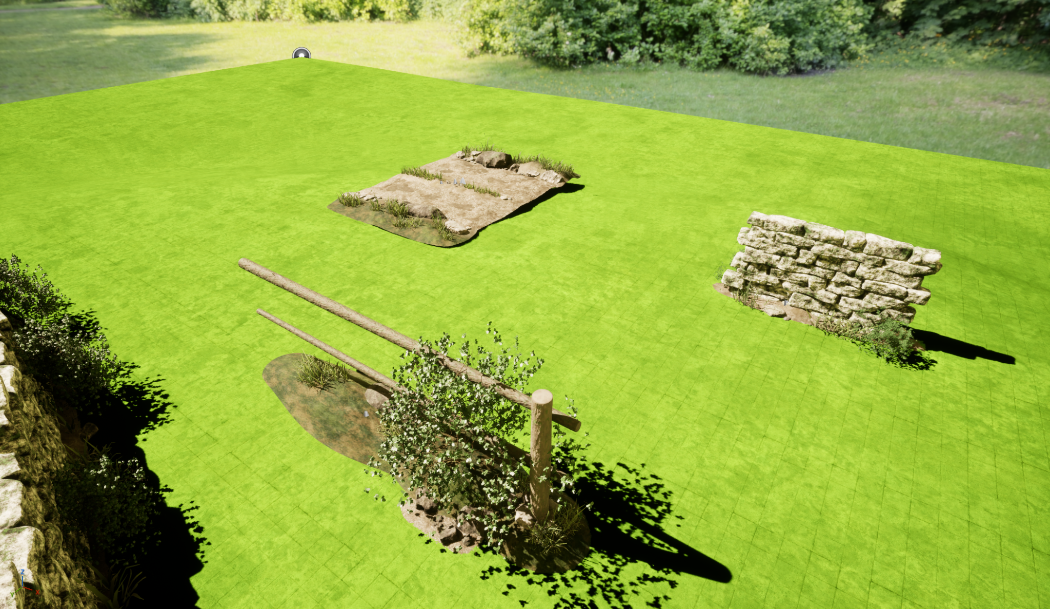 So lassen sich Wege, Zäune, Mauern usw erstellem , welche man dann nur noch per Splines in die Landschaft pflanzen muss. Ziemlich komfortabel und mit einem gewissen Maß an Zufall.